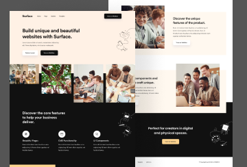The Surface UI Kit includes a collection of pages, components and sections that can be used across an unlimited amount of projects. These items are purpose built to be easily edited and customizable to your brand.